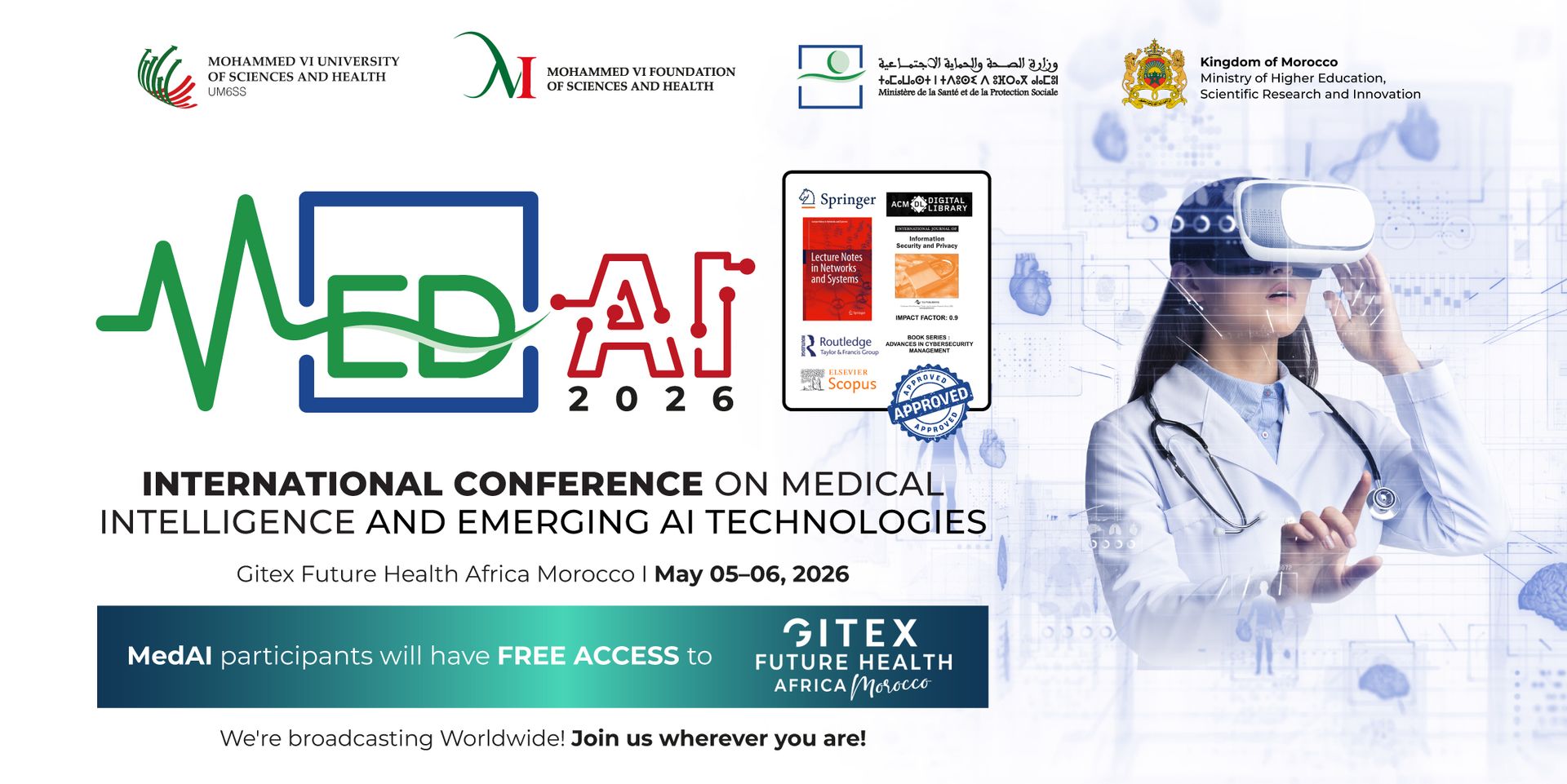 MedAI 2026—Where Medical Intelligence Meets Advanced AI Join researchers, clinicians, and innovators worldwide to advance trustworthy and impactful medical AI. Hybrid event: Casablanca onsite and online participation. Call for Papers & Registration Open.