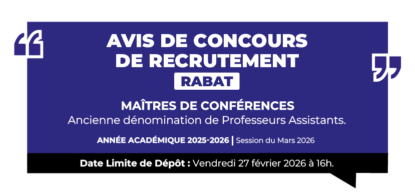 Avis de Concours de Recrutement de Maîtres de Conférences (ancienne dénomination de Professeurs Assistants) Année Académique 2025-2026 / Rabat