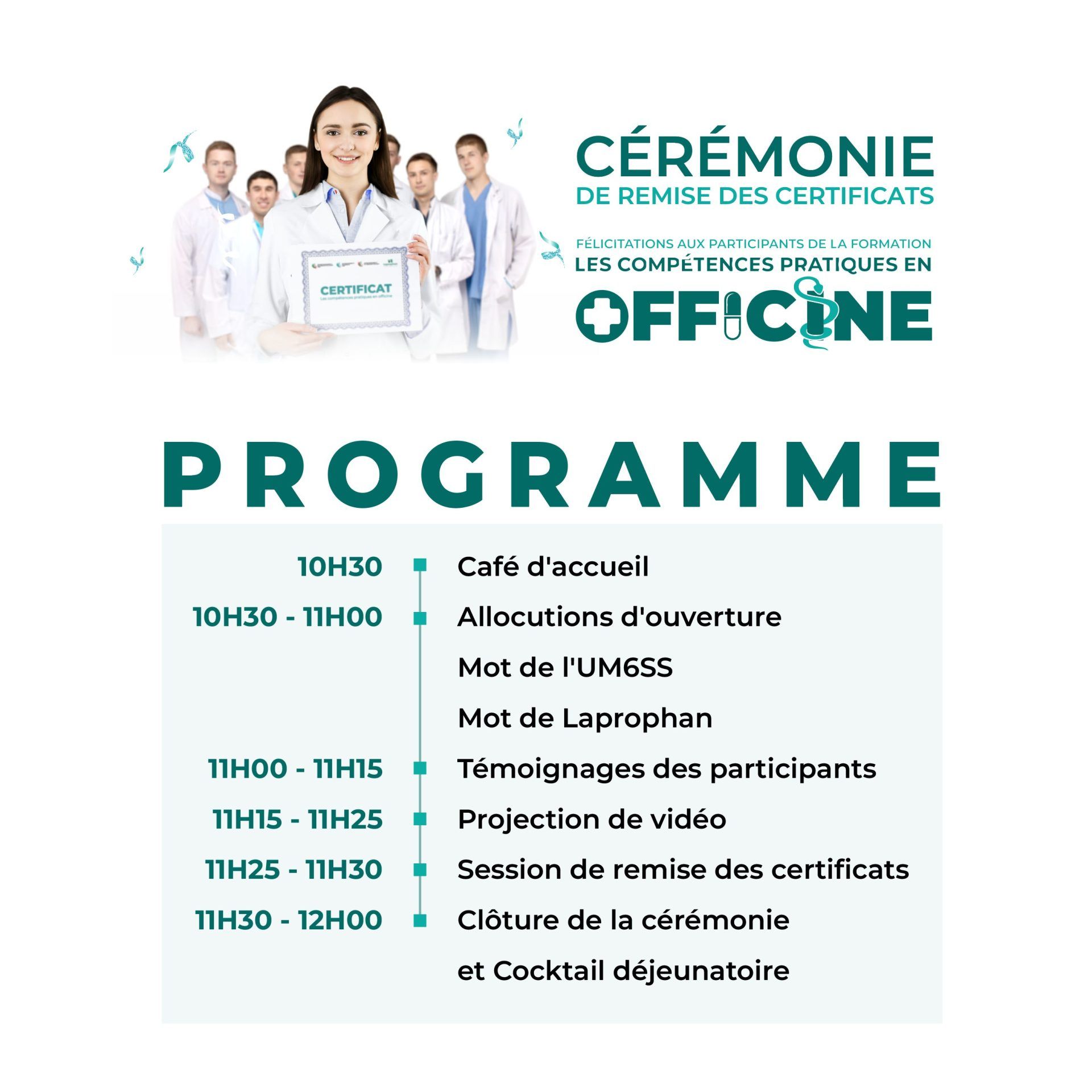 Cérémonie de remise des certificats « Compétences Pratiques en Officine »