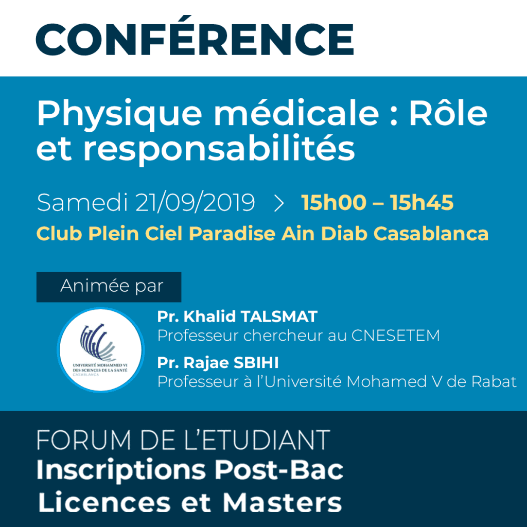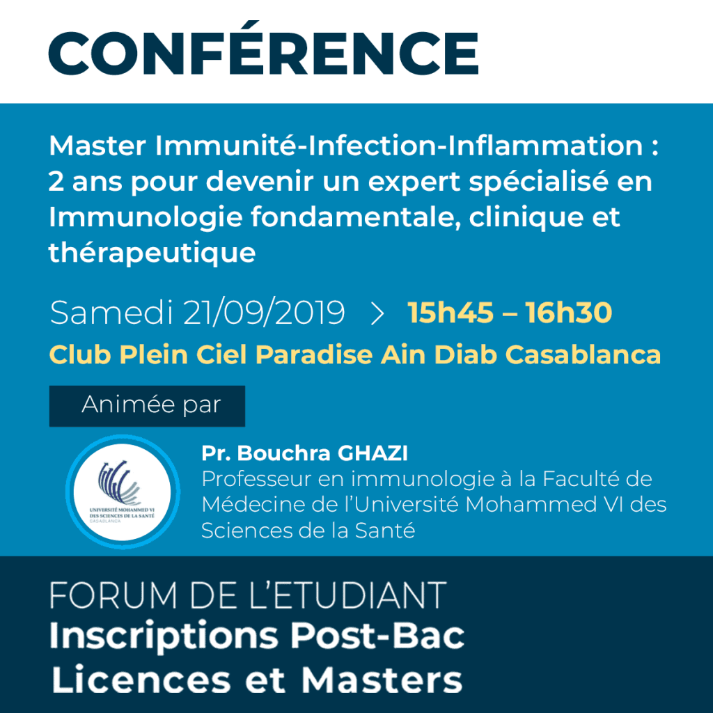 Dans le cadre du cycle de conférences organisé en marge de la 17 ème édition du Forum des Inscriptions Post-bac, Licences et Masters, prévu du jeudi 19 au samedi 21 septembre 2019.