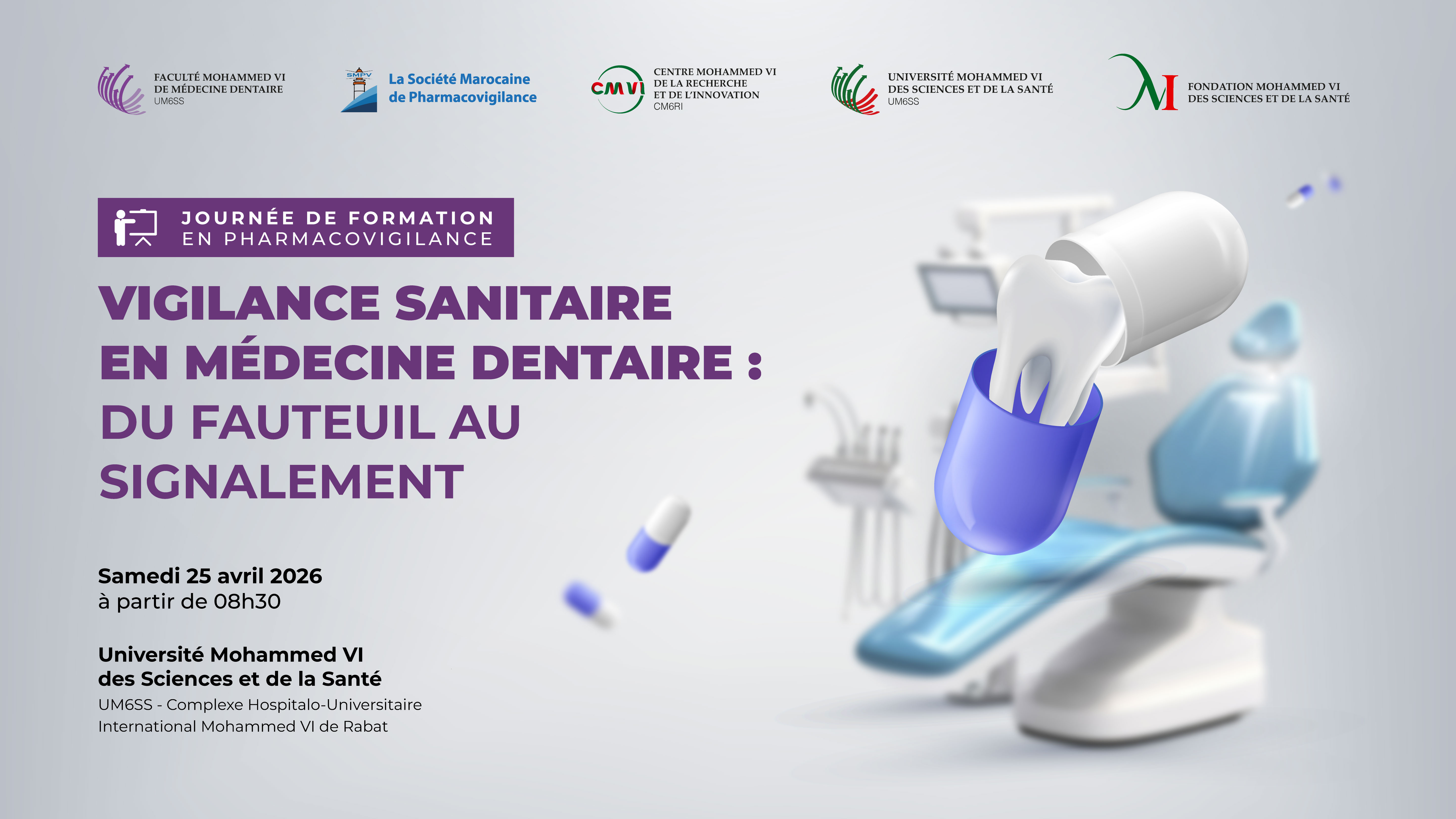 Organisée conjointement par la Société Marocaine de Pharmacovigilance, le Collège de Médecine Dentaire, le Centre Mohammed VI de la Recherche et de l’Innovation et l’Université Mohammed VI des Sciences et de la Santé, la Journée de Vigilance Sanitaire en Médecine Dentaire s’inscrit dans une dynamique de renforcement de la sécurité des soins et de promotion d’une culture de vigilance sanitaire dans le domaine bucco-dentaire.
